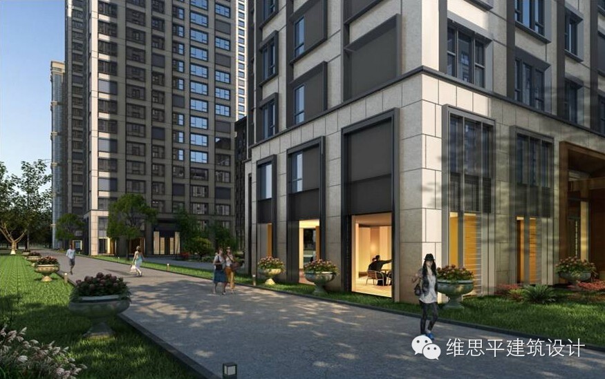 城市需要保持足够的活力,活力来源于各种功能和人群的混合,混合功能提供给业主一种更为便利的生活方式,即在社区内步行即可满足日常生活的居住、学习、休闲、购物等各种需求。设计师在设计中刻意避免将商业与居住独立分隔,同时结合了幼儿园与北侧中学带来的活力资源,实现了资源的共享利用。