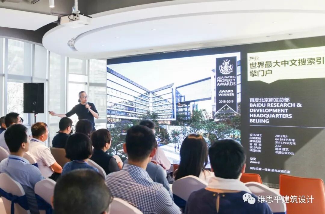 维思平执行主设计师曲克明则与大家解析了新型办公项目,讲述了以人为本的办公场所 、办公的六大发展趋势及美立方项目案例分享,全面解析了设计师如何在郑州高新区这片沃土上,打破传统写字楼的沉闷,通过“功能混合”的业态配置与“小街区—密路网”的组织模式,以及低层高密度的建筑布局,妙手打造了活力办公街区——郑州美景美立方。